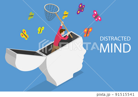 3D Isometric Flat Vector Conceptual Illustration of Distracted Mind