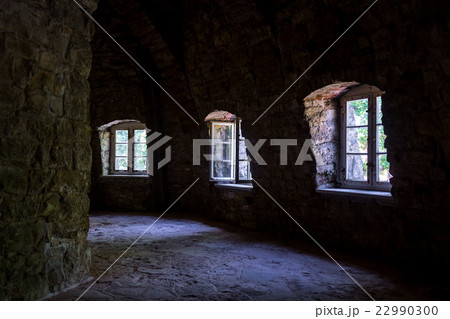 old hallway and brick wall seen from inside hdr