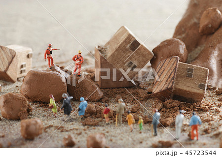 自然災害と土砂崩れのジオラマモデル