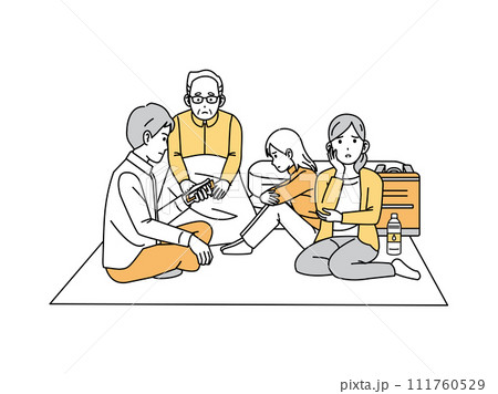 避難所生活をする家族のイラスト