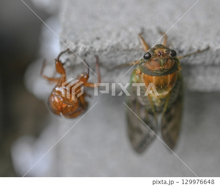 奇跡の瞬間 羽化したばかりのアブラゼミと抜け殻
