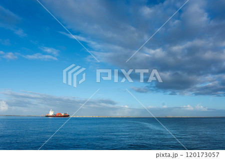 沖縄 那覇 那覇クルーズターミナルに停泊中の大型客船と観光バス