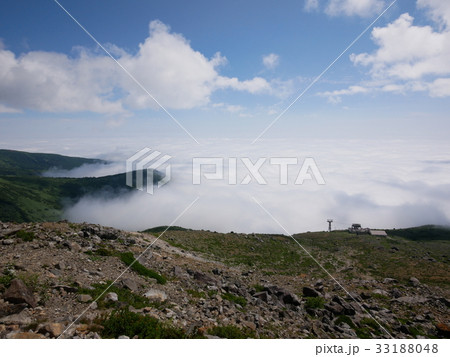 栃木県那須郡那須栃町 茶臼岳から見る雲海と那須ロープウェイ