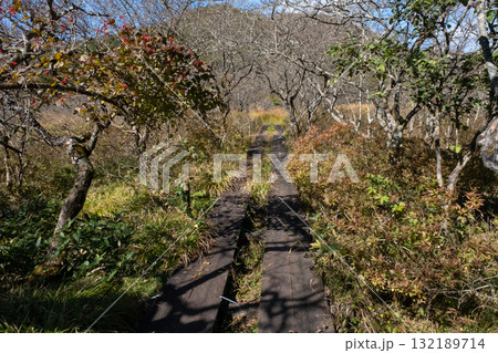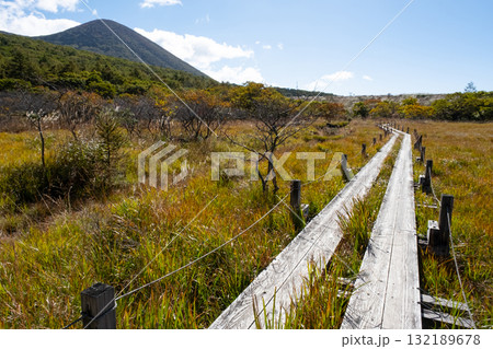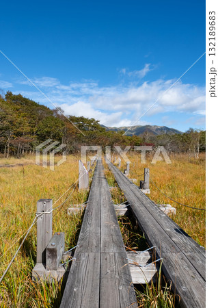 栃木県那須塩原市沼ッ原湿原木道のある風景