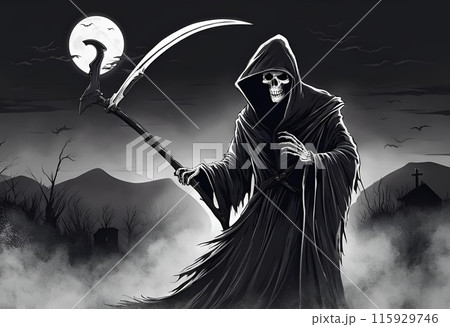 AI生成イラスト|交通ルールを無視すると死神がやって来る|地獄の死神イメージ|交通安全イメージ