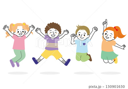 笑顔でジャンプする子どもたちのカラフルなイラスト