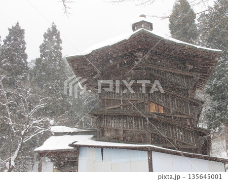 雪の舞うさざえ堂 福島