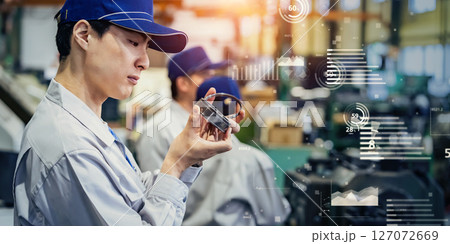 工場で製品を検品する男性作業員