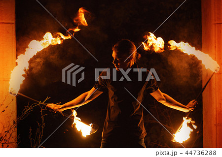 Fire show. Dance with Staff