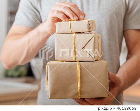 man hold boxes delivery online order shipping