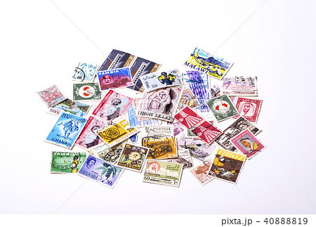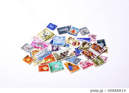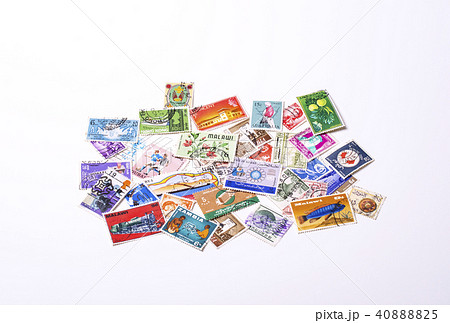 たくさんの外国切手 古い外国の切手 イメージ素材 スタンプの押された切手