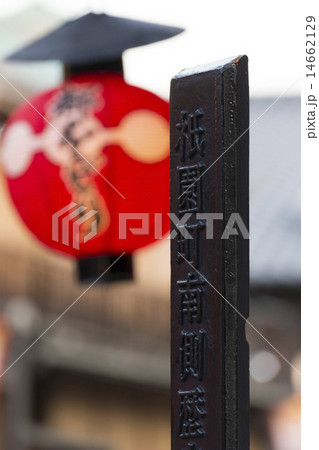 京都祇園の街並み 一力亭 都をどりの提灯 春