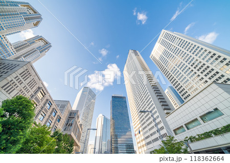「東京都」新宿新都心のビル群を見上げる
