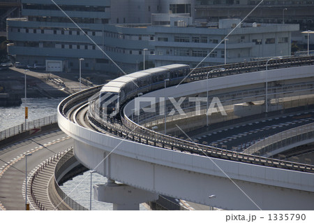 1月都市の風景・街並み649高架橋を走る無人自動運転車両