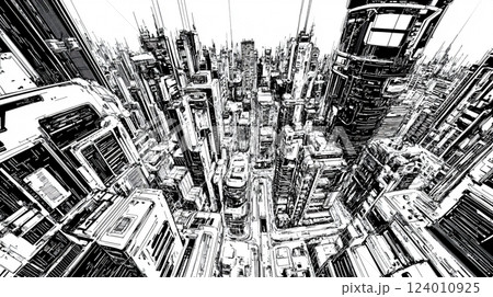 近未来のサイバーパンク都市のスケッチ風イラスト