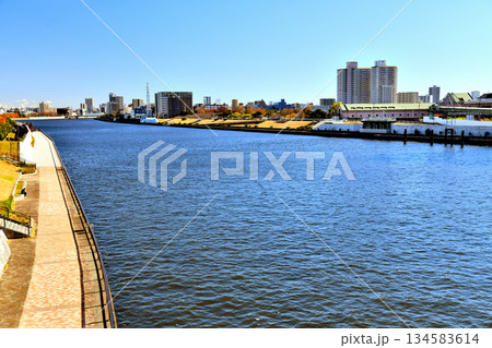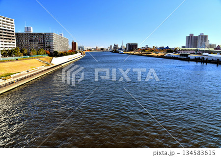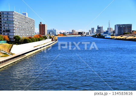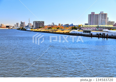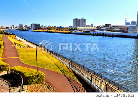 尾久橋/隅田川より尾久の原公園、尾竹橋方面を望む(東京都荒川区)【2025.12】