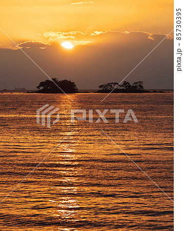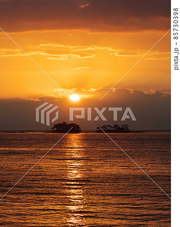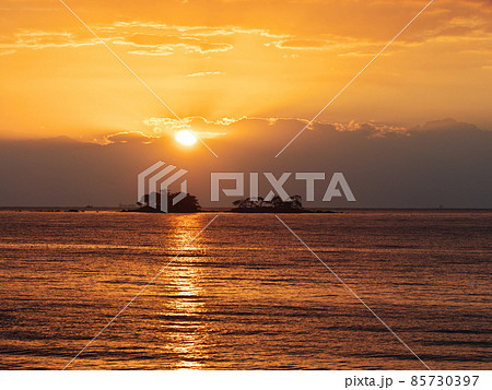 黄金色に染まる富山湾と虻ガ島に昇る太陽