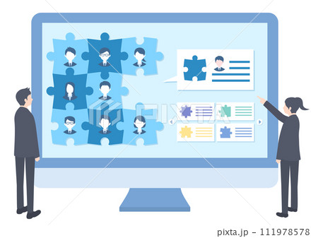 採用を検討する。アクティブな顧客を見つけるイメージのイラスト素材。
