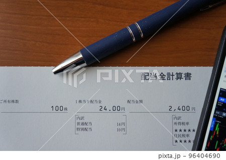 配当金計算書の画像素材(写真・イラスト)は69件あります。この検索結果では、電卓、確定申告書、ボールペン、書類、お金、ビジネス、株主、データ、グラフ、資料、株式投資、株、がま口、財布、紙幣などの絞り込みキーワードがよく使われています。 全て表示