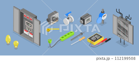 3D Isometric Flat Vector Set of Tools Of Electrician