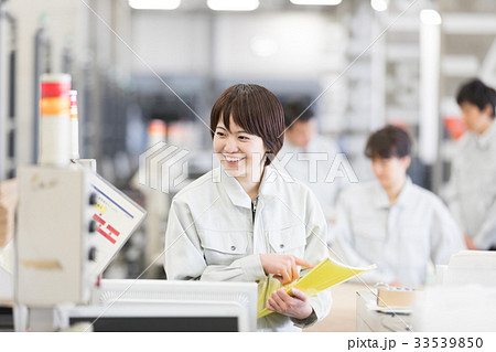 女性のフォークリフトオペレーター カメラ目線 笑顔 ポートレート