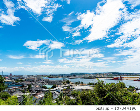 歴史の薫る港町酒田の美しい日和山公園の夏景色 日本最古の木造六角灯台