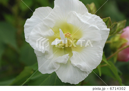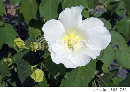 植物園に白色のアメリカフヨウの花が咲いています。学名はHibiscus moscheutosです。