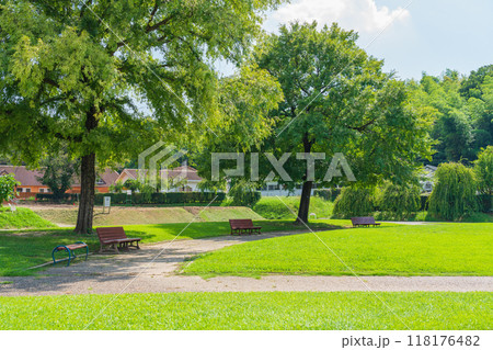 北海道・北海道大学・札幌農学校第2農場・入口すぐの池越しに眺める模範農場・札幌市