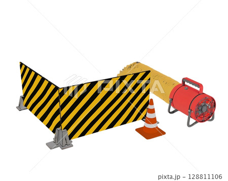 建設土木工事現場での地下工事のバリケードと酸欠防止の送風機