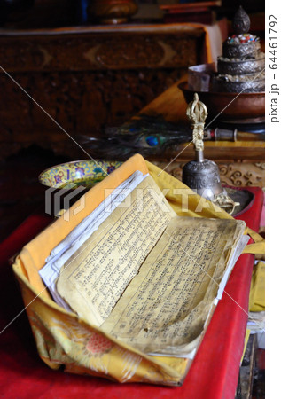 Buddhist prayer book at Tibetan Spituk monastery
