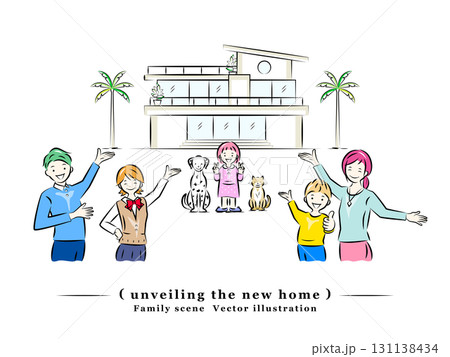 新築の家(マイホーム)をお披露目するファミリー|家族シリーズ