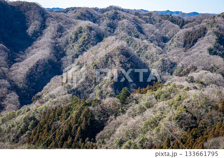 冬枯れの竜神峡に広がる山並みの雄大な風景(茨城県常陸太田市)