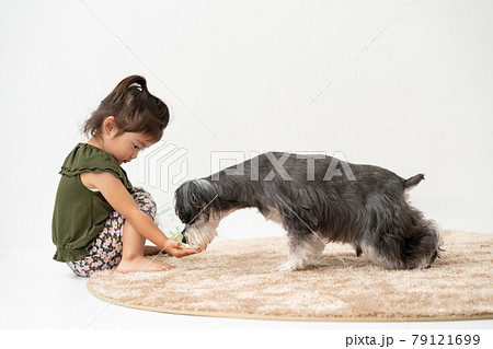 犬と遊ぶ女の子 ミニチュアシュナウザー
