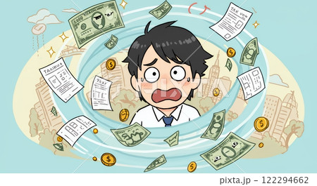 税金や借金の重荷に苦しんで限界になる人物のイラスト