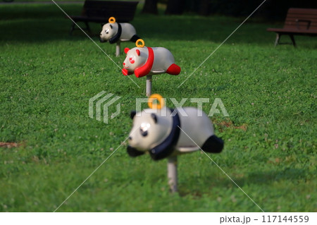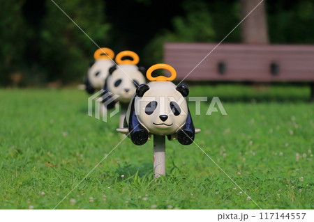 公園にあるパンダのロッキング遊具(跨って乗り揺らして遊ぶ遊具)