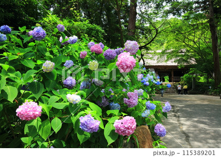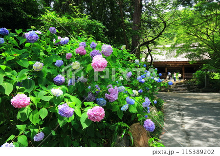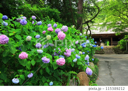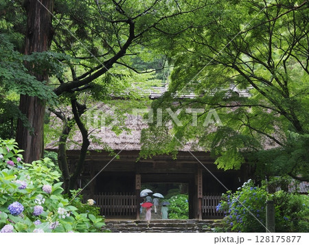 アジサイ咲く阿弥陀寺の仁王門(山口県防府市)