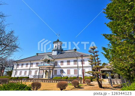 《長野県》松本市 春の青空に映える旧開智学校と満開の桜