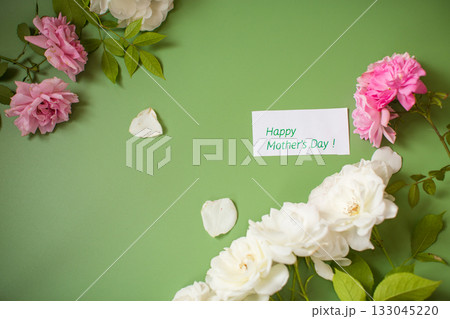 White and pink rose isolated on green background