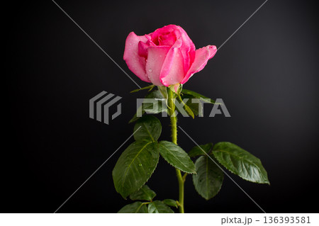 Isolated pink rose on black background