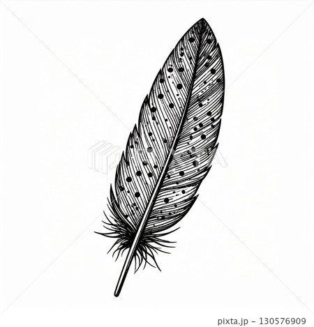 Detailed Black And White Bird Feather Illustration