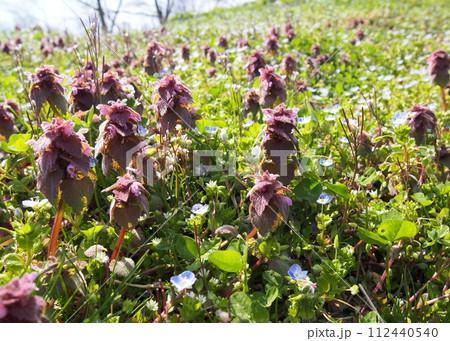 春の野に咲くヒメオドリコソウ
