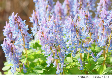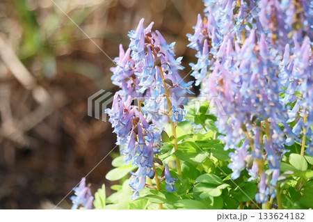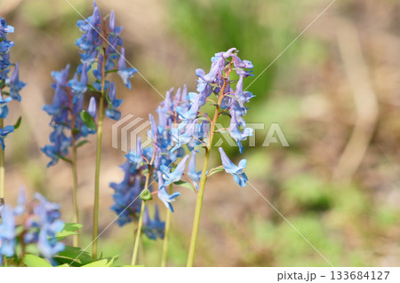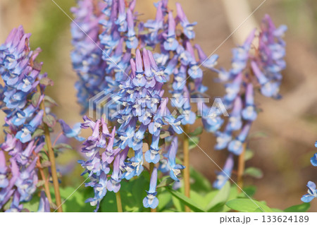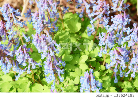 春の北海道の庭に咲くエゾエンゴサク