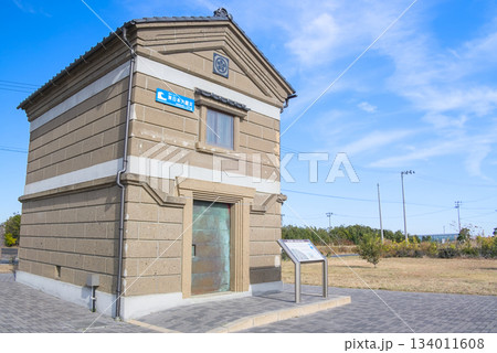 千年希望の丘・二野倉公園に残る震災遺構の蔵と青空