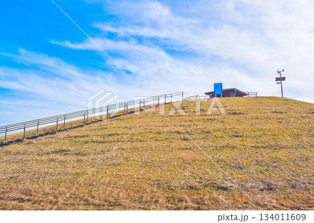 千年希望の丘8号丘の展望台へ続く丘と青空の風景