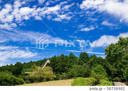 高原の青空とレストハウス