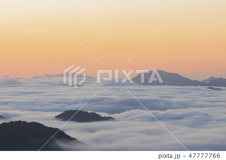 瀬戸内海国立公園野呂山鉢巻き山展望台よりの雲海と朝焼け