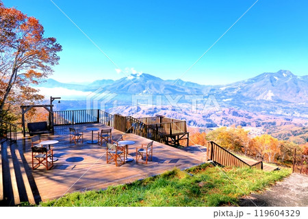 斑尾山より望む紅葉の野尻湖と北信五岳