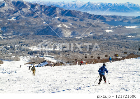 池の平温泉アルペンブリックスキー場から見た斑尾山と野尻湖