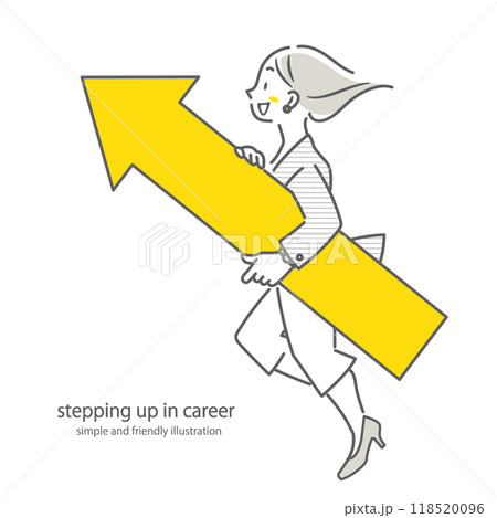 上昇思考の強いポジティブなビジネスウーマン シンプルでお洒落な線画イラスト