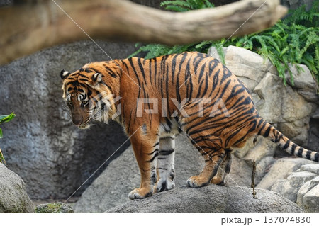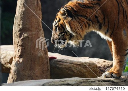 遠くを見つめるスマトラトラの落ち着いた表情 神戸どうぶつ王国